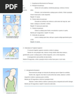 Energia os seguintes Chakras: Muladhara, Svadhisthana, Manipura e Vishudha. - Erros comuns: Ao inclinar o tronco para o lado, girar a bacia. Incline o tronco o mximo que for possvel, mantendo a bacia apontada para frente. Contra-indicaes: Se voc estiver sentindo dores no pescoo, fique olhando para frente ao invs de olhar para a mo de cima. Se sentir muitas dores no ombro (msculo deltide) ao fazer este Exerccio, faa o Exerccio alternativo a seguir. EXERCCIO ALTERNATIVO Meia Postura do Tringulo Estendido (Ardha Utthita Trikonasana) Execuo: Postura inicial - de p, com os ps juntos e braos ao longo do corpo. Levante o brao direito at prximo da orelha, mantenha-o vertical e esticado, com a palma da mo na direo do corpo. Incline o tronco para o lado esquerdo de modo a alongar todo o seu lado direito. Faa 7 respiraes completas e em seguida retorne posio inicial. Repita o Exerccio com o brao esquerdo. Se ainda assim as dores no ombro continuarem, no levante tanto os braos e diminua o nmero de respiraes durante o Exerccio. Exerccio 8 - Postura do Joelho ( Janursana) Execuo: Em p, abra suas pernas na distncia de 6 a 7 palmos. Gire o p direito 90o para o lado direito, de modo a ficar com os dedos do p direito apontando para o seu lado direito. Gire o p esquerdo 45o tambm para o seu lado direito. Mantenha a bacia encaixada e virada para sua frente. Coloque as mos na cintura. Esta a sua posio inicial. Mantendo a bacia virada para frente e o joelho esquerdo esticado, flexione o joelho direito at que o joelho fique sobre o calcanhar e sua perna perpendicular ao cho. Nesta posio, faa 7 respiraes completas. Aps a stima respirao, desfaa, retorne para a posio inicial e repita o Exerccio para o lado esquerdo. - Benefcios: Este Exerccio fortalece a musculatura das pernas e energiza o Muladhara Chakra. - Erros comuns: Ao colocar o joelho sobre o calcanhar, a bacia gira para o lado da perna flexionada. Mantenha a bacia sempre virada para frente e ento tente colocar o joelho sobre o calcanhar, mas sem tirar a bacia dessa posio. A perna fica inclinada em relao ao cho. A perna deve ficar sempre perpendicular ao cho, ou seja, o joelho sobre o calcanhar. Certifique-se de que a perna est nesta posio. - Contra-indicaes: Este Exerccio trabalha com intensidade a regio do joelho. Se voc sentir que est forando muito o joelho, diminua o nmero de respiraes ou at mesmo no faa esse Exerccio. Exerccio 9 - Toro em Sukhsana (Postura Fcil) - Execuo: