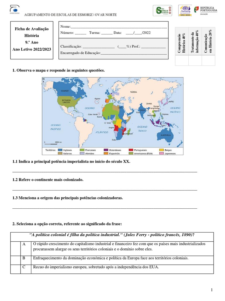 b) As rivalidades políticas e económicas dos países europeus resultaram do seu imperialismo.