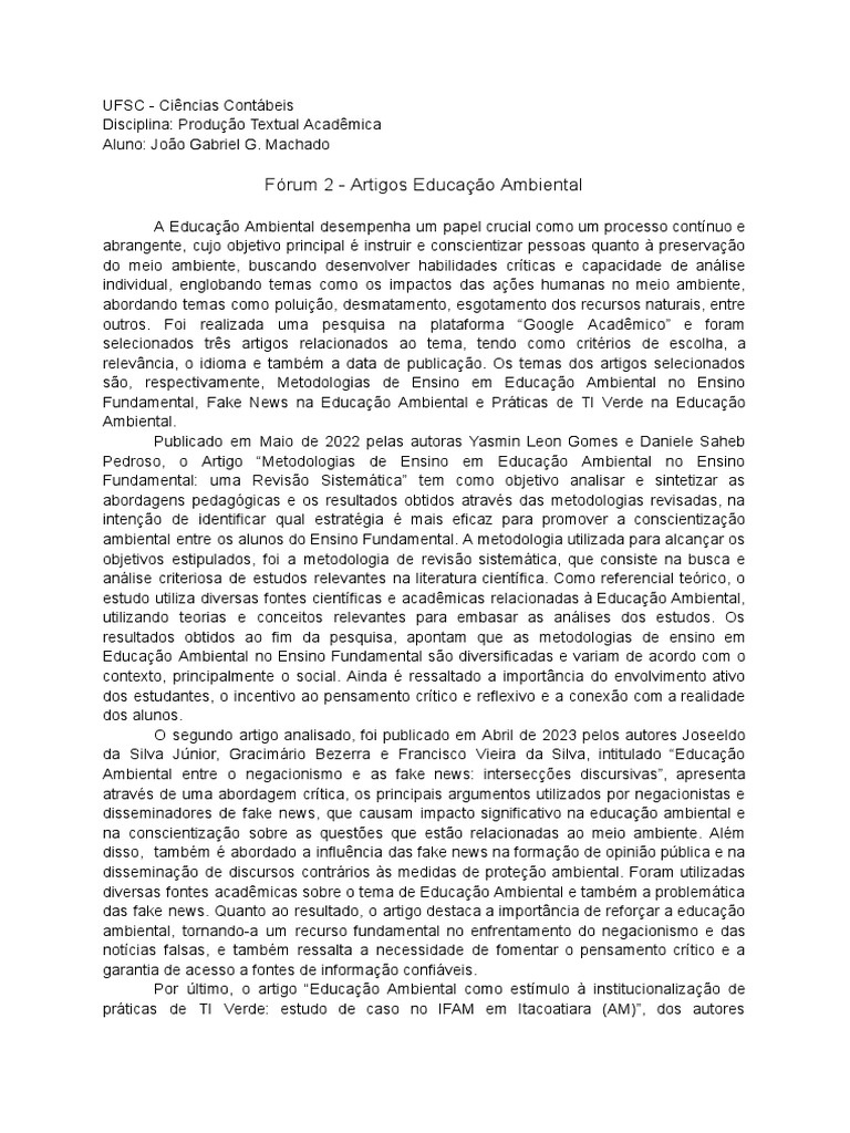 Fórum 2 - Artigos Educação Ambiental