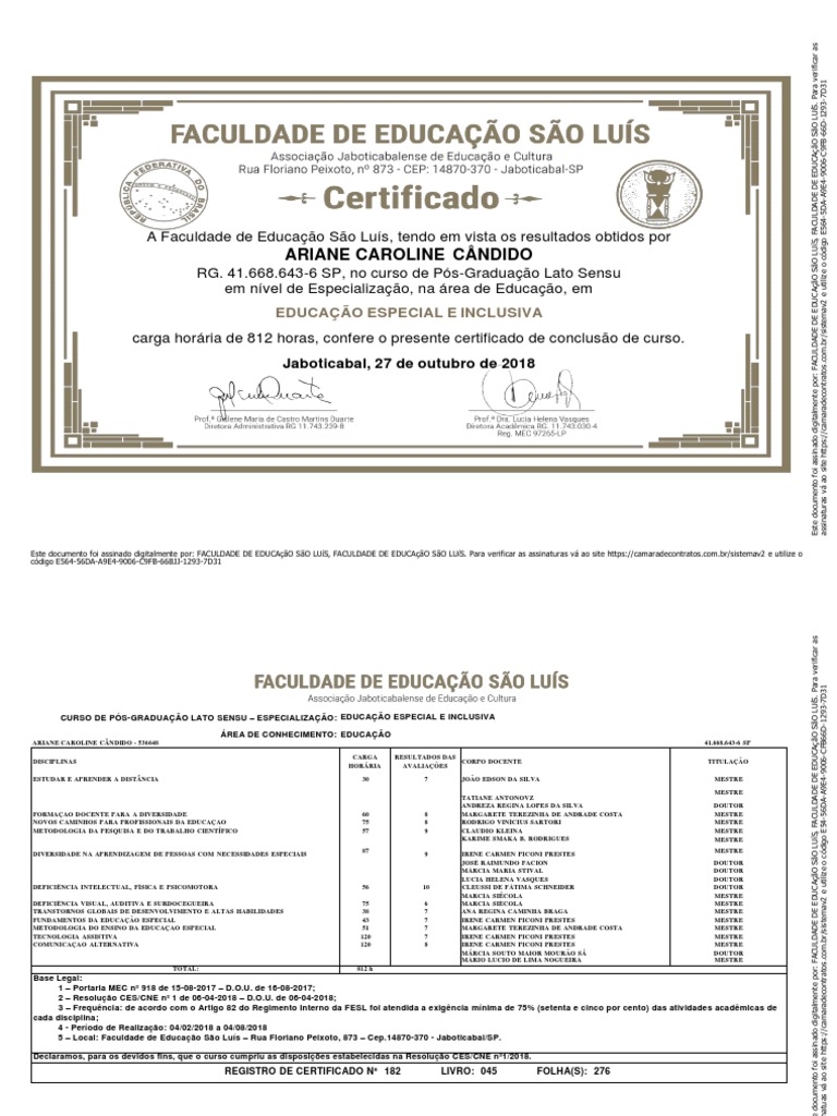 Este documento foi assinado digitalmente por: FACULDADE DE EDUCAçãO SãO LUíS, FACULDADE DE EDUCAçãO SãO LUíS. Para verificar as assinaturas vá ao site [Link] e utilize o