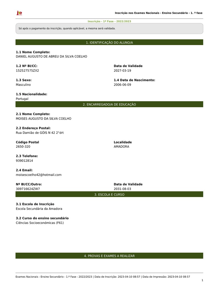 Exames Nacionais - Ensino Secundário - 1.ª Fase - 2022/2023 | Data de Inscrição: 2023-04-10 08:57 | Data de Impressão: 2023-04-10 08:57