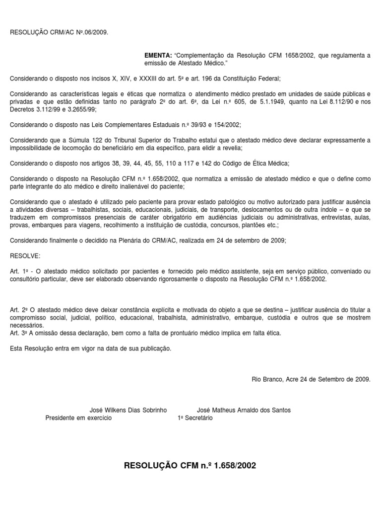 RESOLUÇÃO CRM/AC Nº.06/2009.