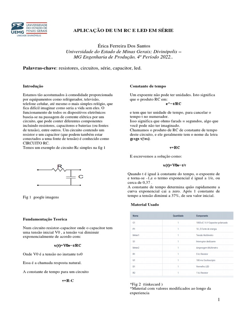 Palavras-chave: resistores, circuitos, série, capacitor, led.