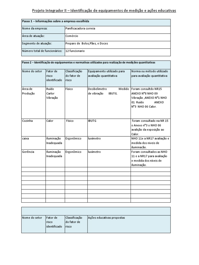 Projeto Integrador II – Identificação de equipamentos de medição e ações educativas