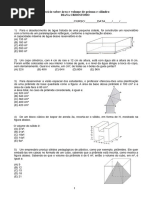 1) Calcule o volume e a rea total do prisma triangular regular onde a aresta da base mede 10cm e a aresta lateral mede 20 cm.