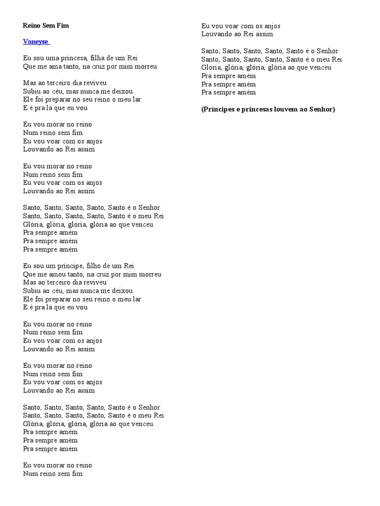 Eu sou uma princesa, filha de um Rei Santo, Santo, Santo, Santo, Santo é o meu Rei