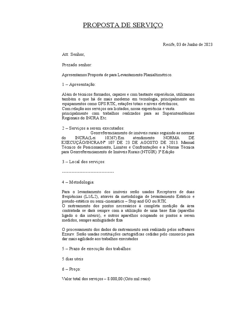 Apresentamos Proposta de para Levantamento Planialtimétrico.