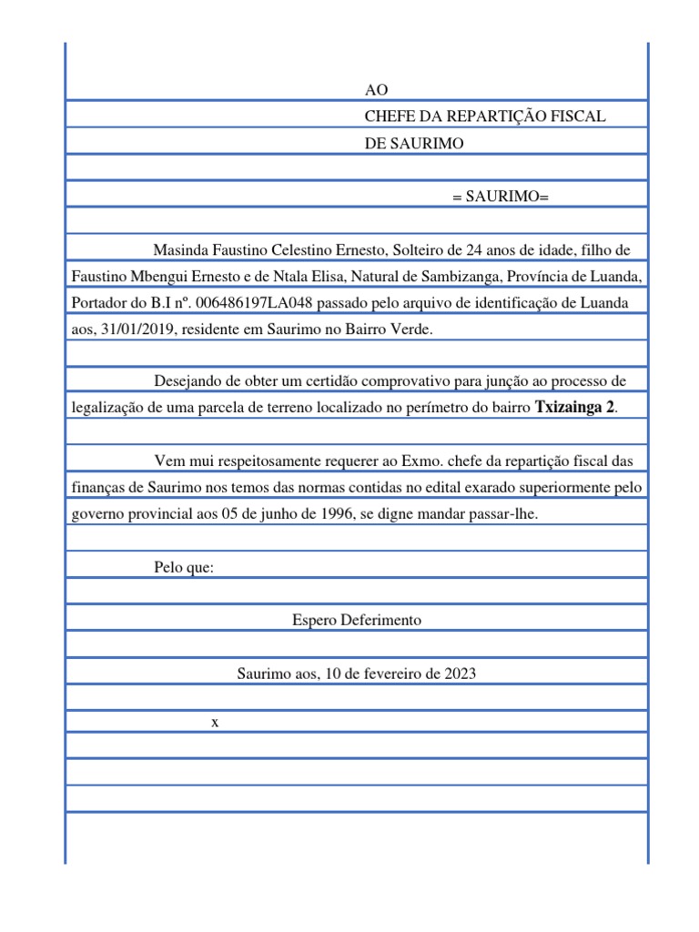 Vem mui respeitosamente requerer ao Exmo. chefe da repartição fiscal das