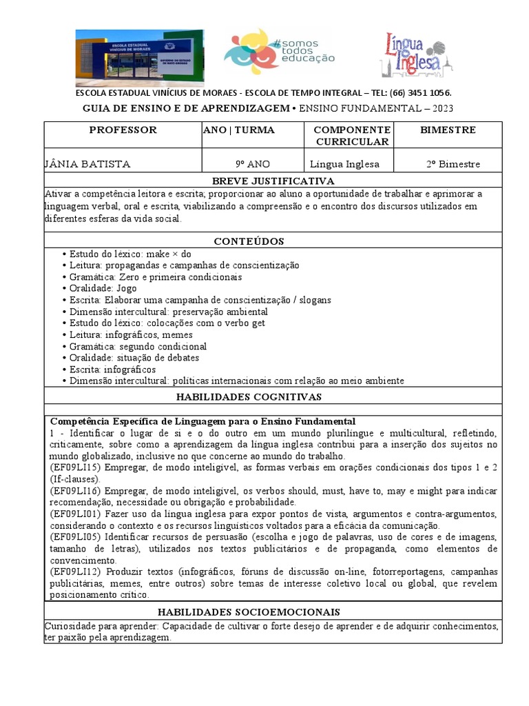 JÂNIA BATISTA 9º ANO Língua Inglesa 2º Bimestre