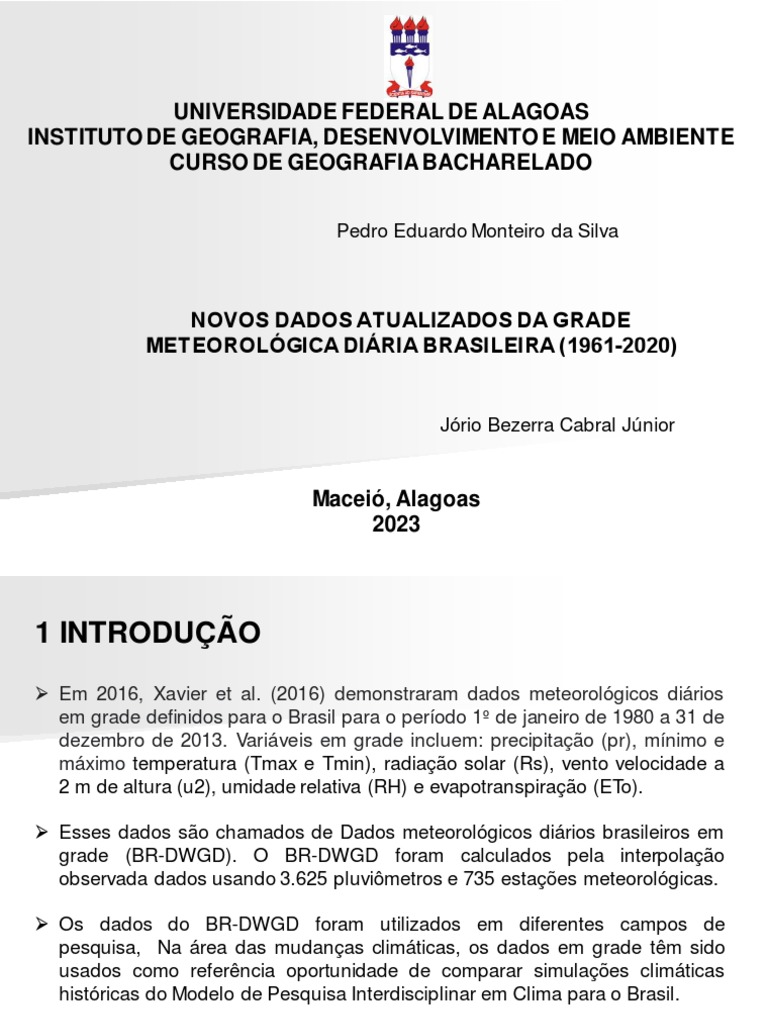 ➢ Em 2016, Xavier et al. (2016) demonstraram dados meteorológicos diários
