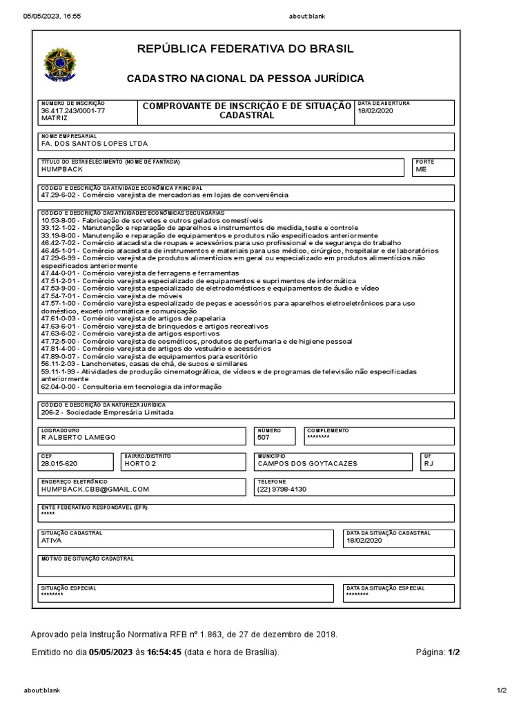 Emitido no dia 05/05/2023 às [Link] (data e hora de Brasília). Página: 1/2