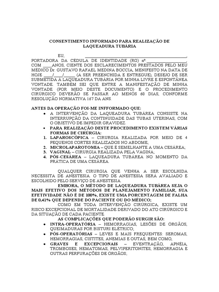 SUBMETIDA À LAQUEADURA TUBÁRIA POR MINHA LIVRE E ESPONTÂNEA