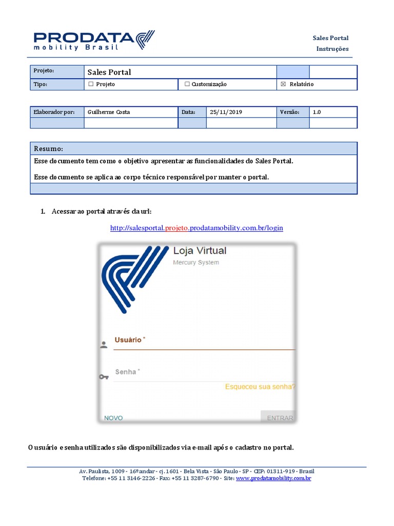 Esse documento tem como o objetivo apresentar as funcionalidades do Sales Portal.