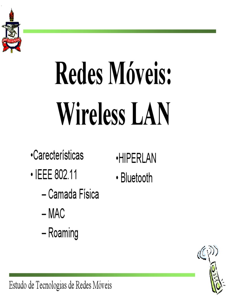 – taxa mais baixa se comparadas às redes cabeadas (1-10 Mbits/s)