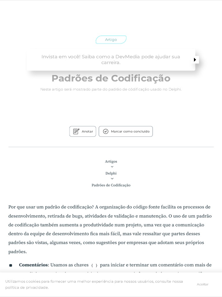 Neste artigo será mostrado parte do padrão de códificação usado no Delphi.