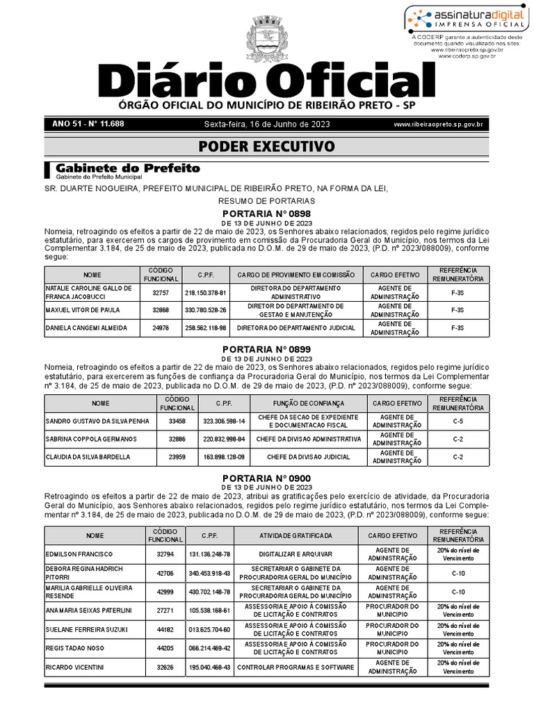 maio de 2023, publicada no D.O.M. de 29 de maio de 2023, (P.D. nº 2023/088618), conforme segue: