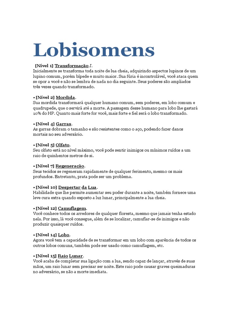 Agora você tem a capacidade de se transformar em um lobo com aparência de todos os