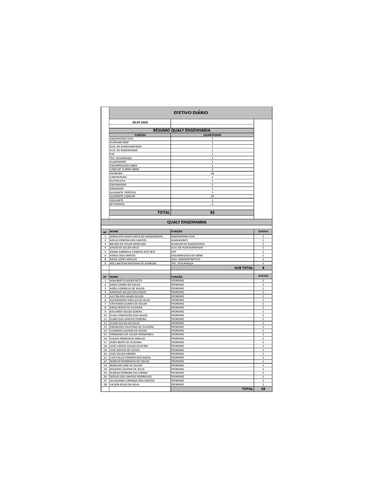 EFETIVO DIÁRIO