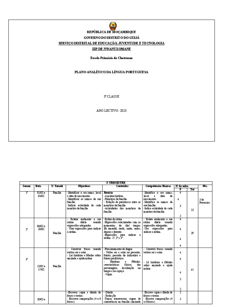 PLANO ANALÍTICO DA LÍNGUA PORTUGUESA