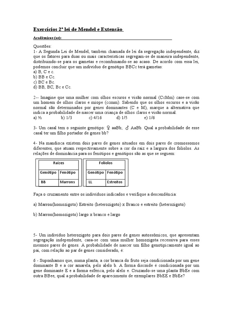 1- A Segunda Lei de Mendel, também chamada de lei da segregação independente, diz