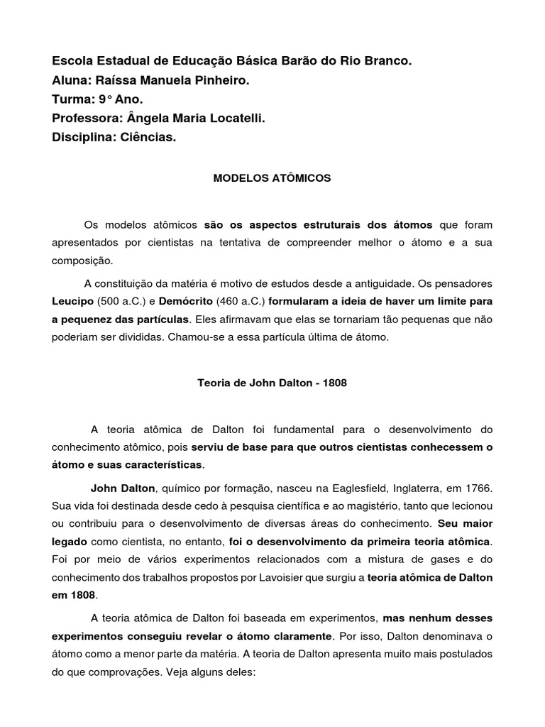 A teoria atômica de Dalton foi fundamental para o desenvolvimento do