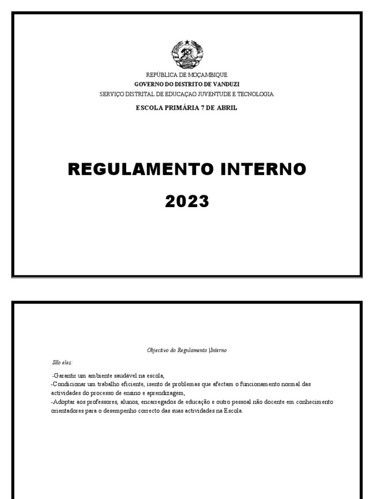 Regulamento interno da escola é um documento que regula o funcionamento exacto de qualquer instituição