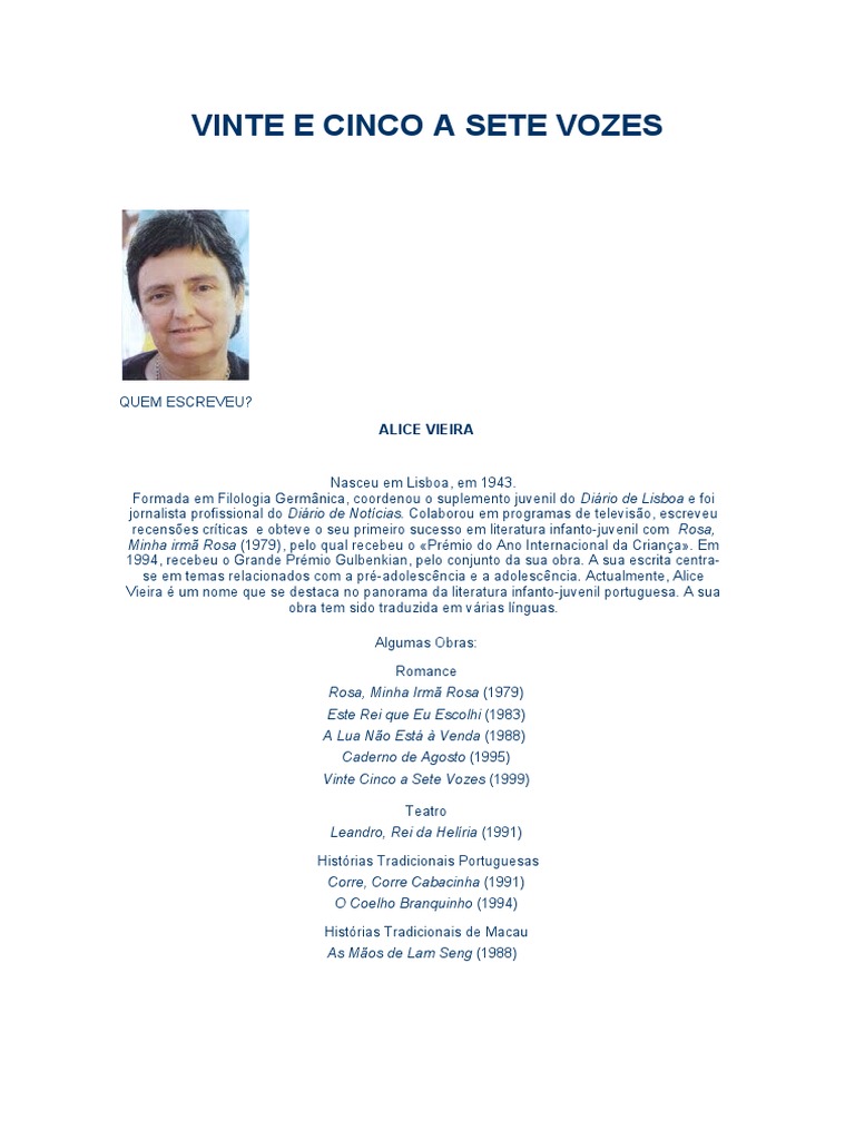 Vieira, Alice – Vinte cinco a sete vozes. Lisboa:Caminho, 1999