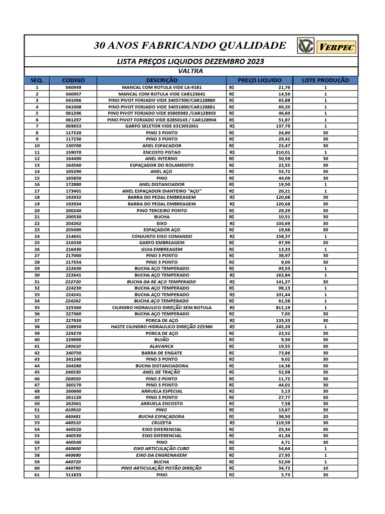 LISTA PREÇOS LIQUIDOS DEZEMBRO 2023