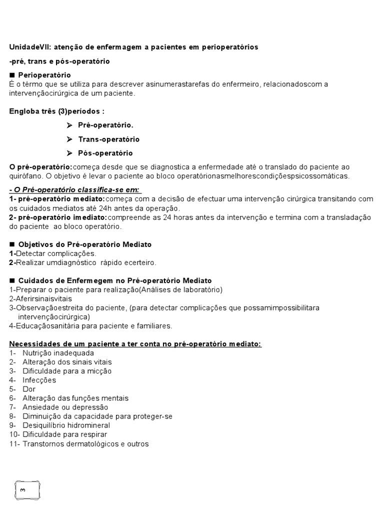 UnidadeVII: atenção de enfermagem a pacientes em perioperatórios
