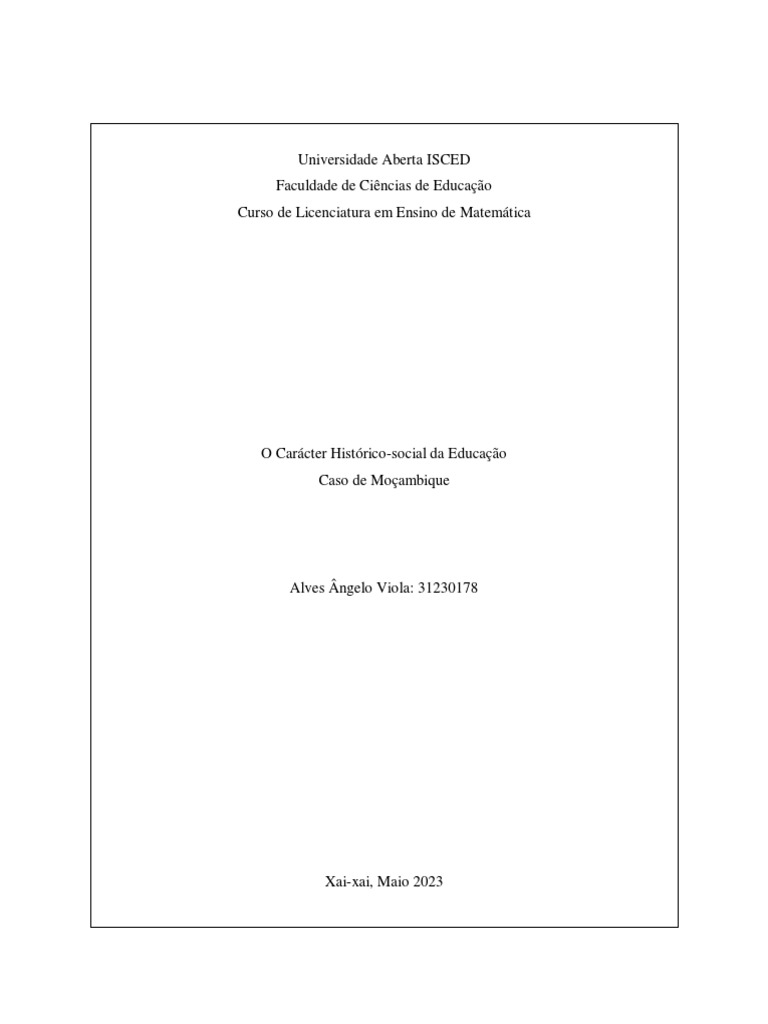 a formação dos moçambicanos aos contextos sociopolíticos, económicos e culturais, marcado
