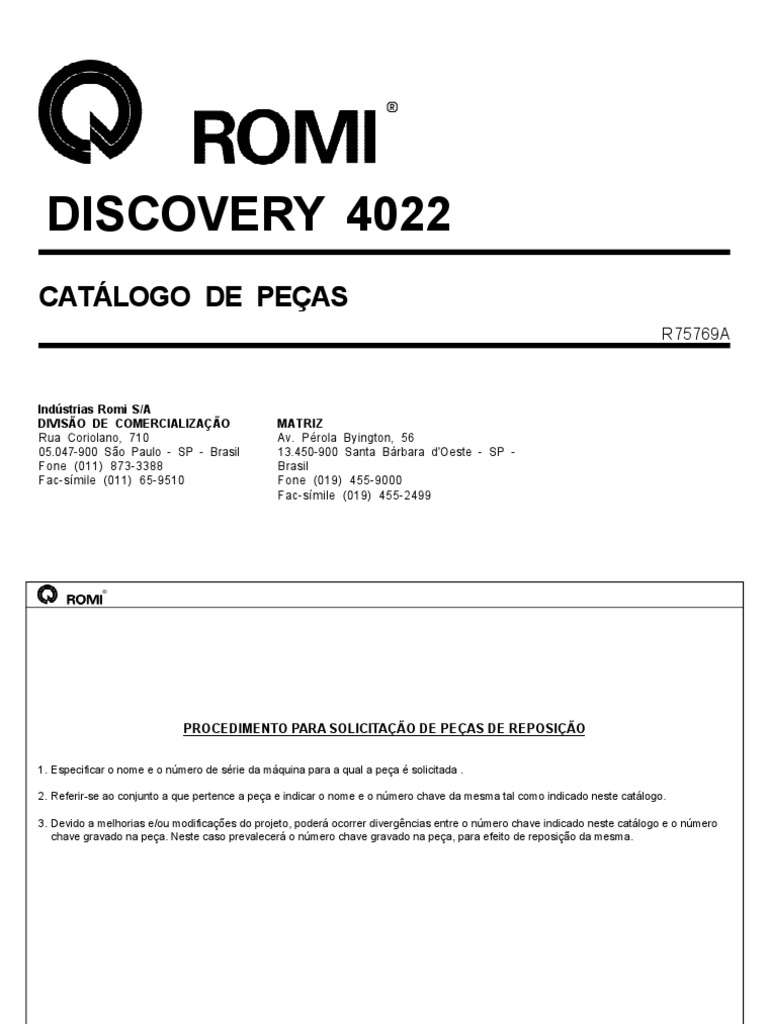 DISCOVERY 4022 - CATÁLOGO DE PEÇAS - R75769A 1