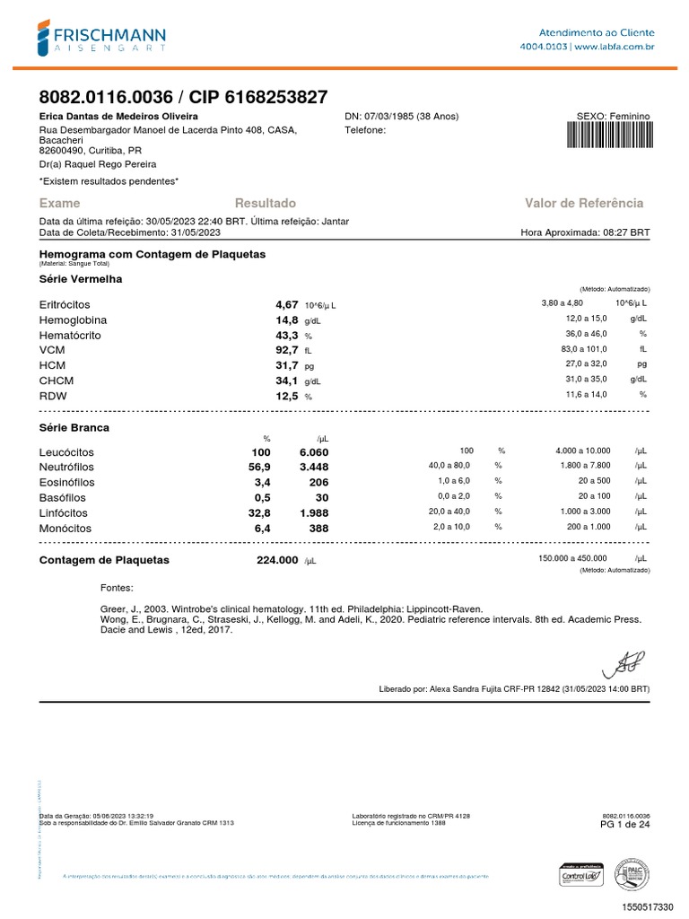 Liberado por: Isabelle Salmon Dias Ribeiro CRBM-PR 2421 (31/05/2023 17:00 BRT)