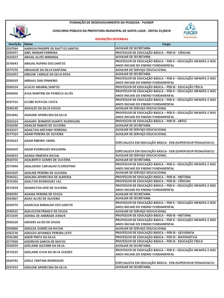 Inscrição Nome Cargo