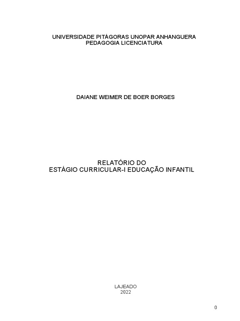 ESTÁGIO CURRICULAR-I EDUCAÇÃO INFANTIL