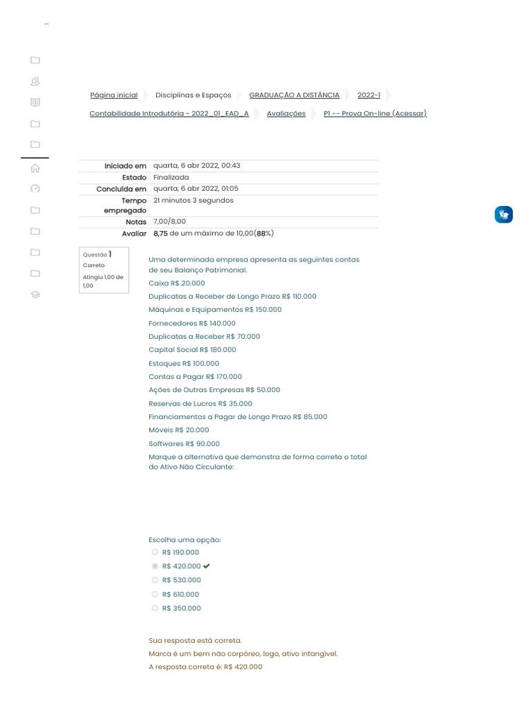 Contabilidade Introdutória - 2022_01_EAD_A Avaliações P1 -- Prova On-line (Acessar)