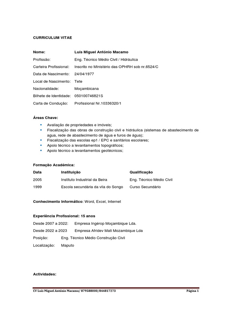 CV Luís Miguel António Macamo/ 879588000/844817273 Página 1