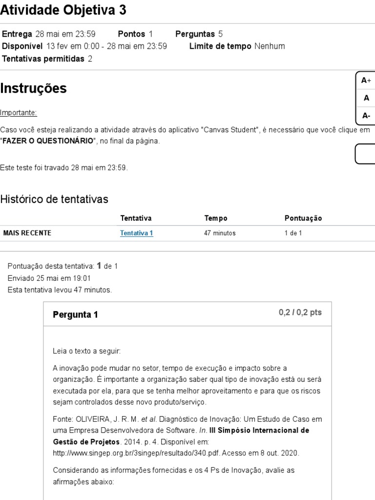 MAIS RECENTE Tentativa 1 47 minutos 1 de 1