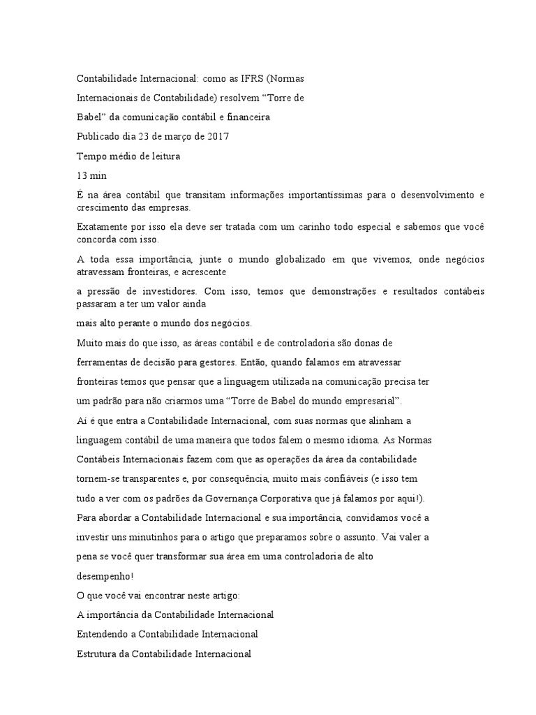 Mas voltando à Contabilidade Internacional, está vendo como o assunto é importante?