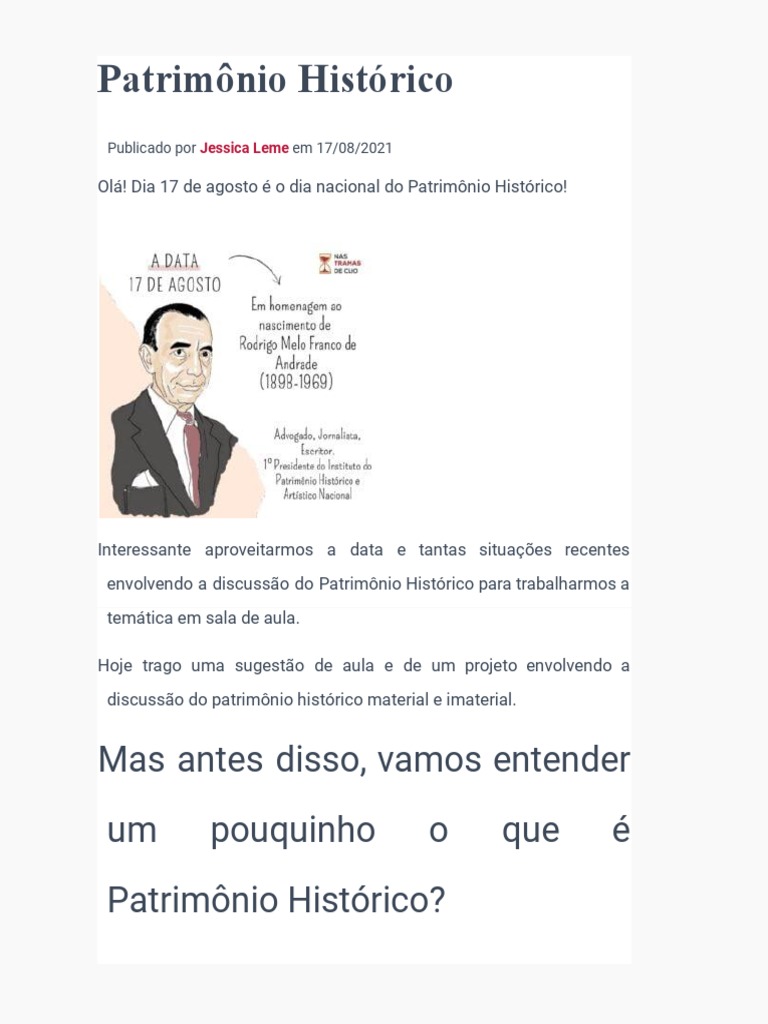envolvendo a discussão do Patrimônio Histórico para trabalharmos a