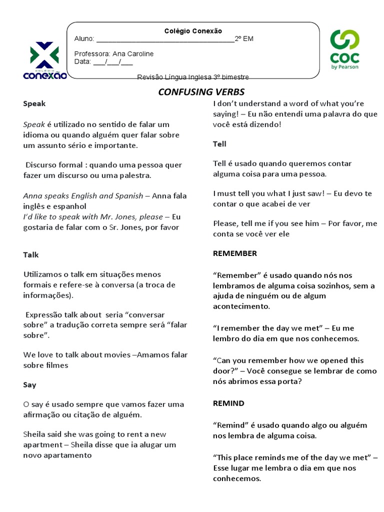 Utilizamos o talk em situações menos “Remember” é usado quando nós nos