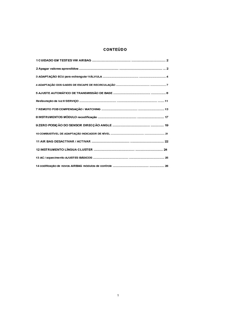 14 codificação de novos AIRBAG módulos de controle ............................................ .................. 26