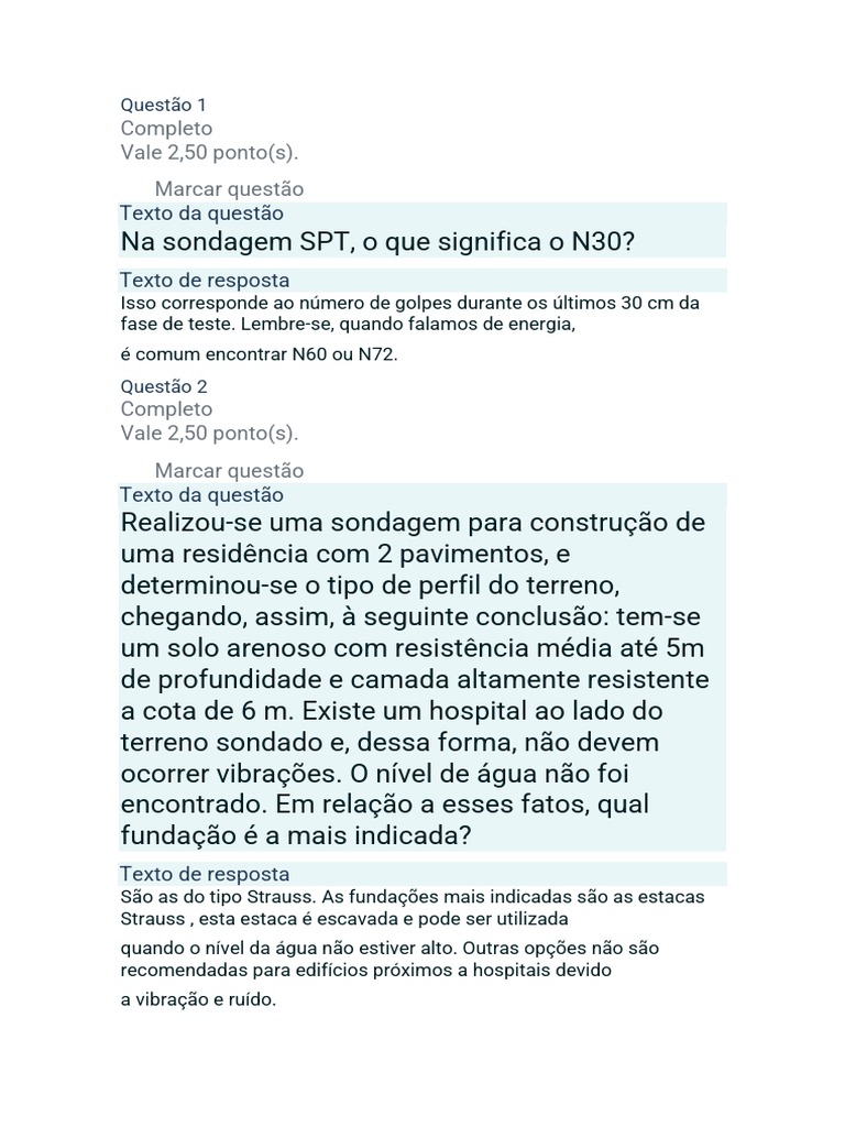 terreno sondado e, dessa forma, não devem