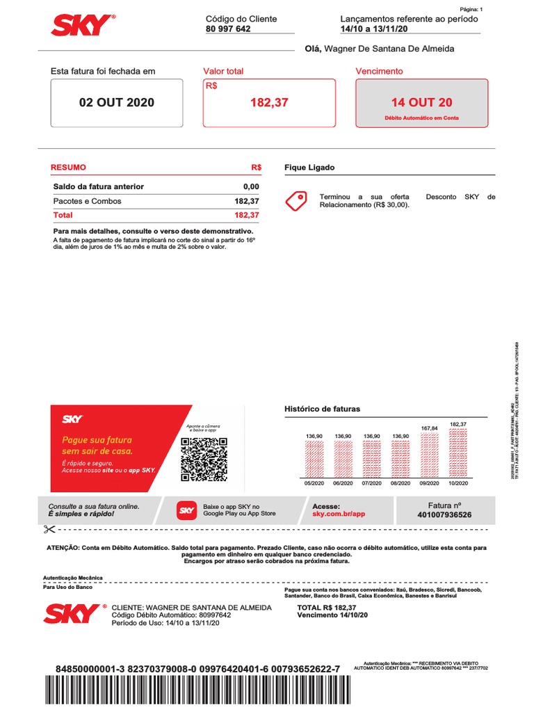Consulte a sua fatura online. Baixe o app SKY no Acesse: Fatura nº