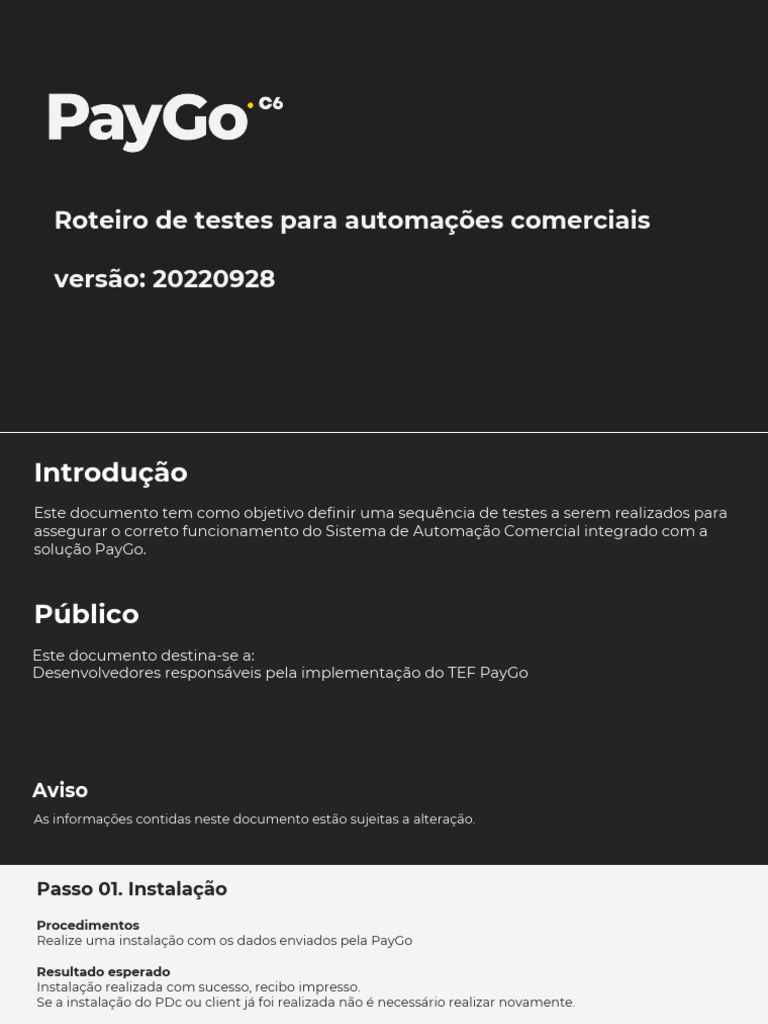 Realize uma instalação com os dados enviados pela PayGo