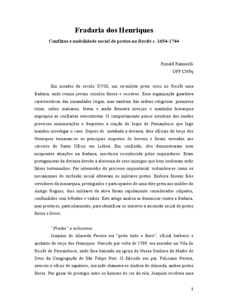 liderança de cativos e forros heréticos, de falsos irmãos de ordens regulares. Aliás,