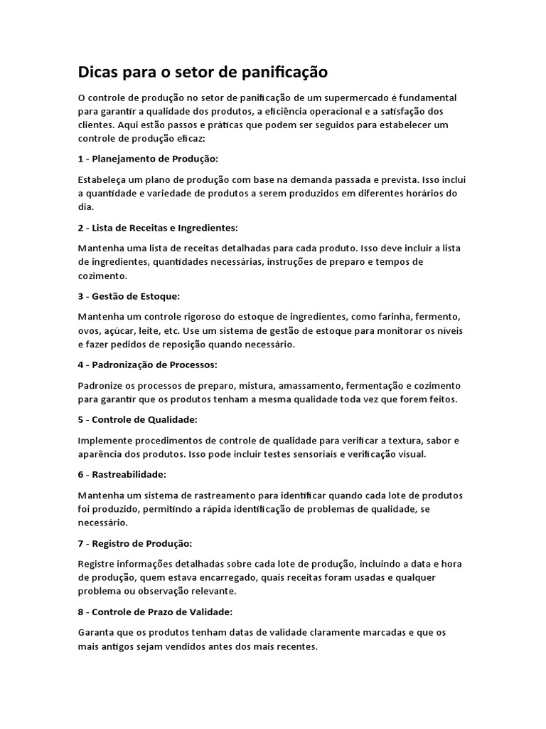 O controle de produção no setor de panificação de um supermercado é fundamental