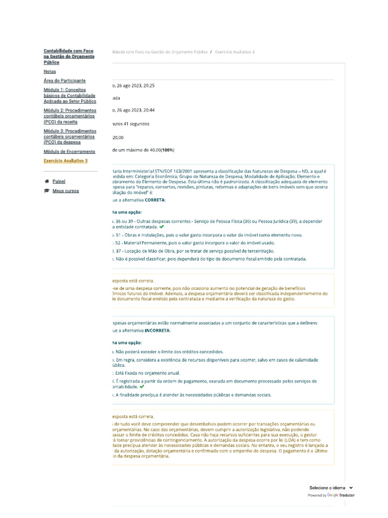 to ical correspond 3 dotago oramentiia previta na LOA. Conformeo Art da Le 4320/1964 05