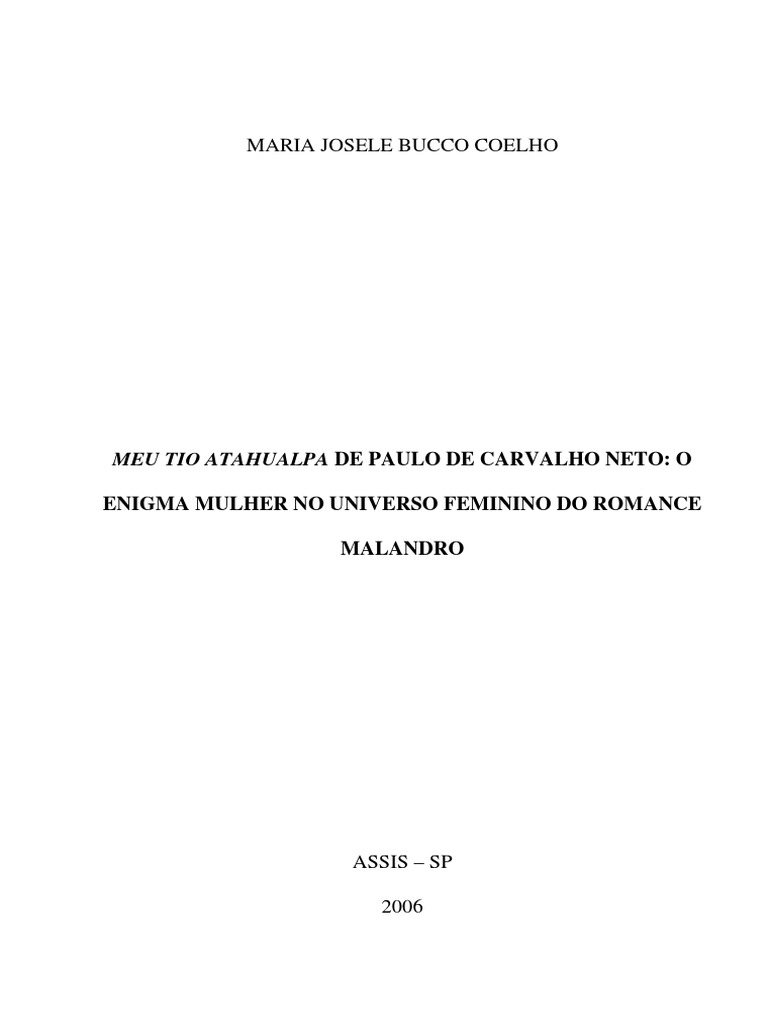 enigma mulher no universo feminino do romance malandro. Assis, 2006.