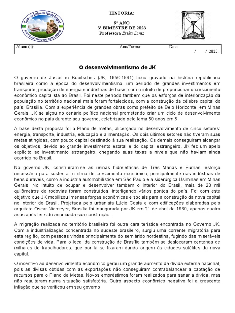 1. Com base nos seus conhecimentos sobre o período e no texto acima, explique o que Juscelino