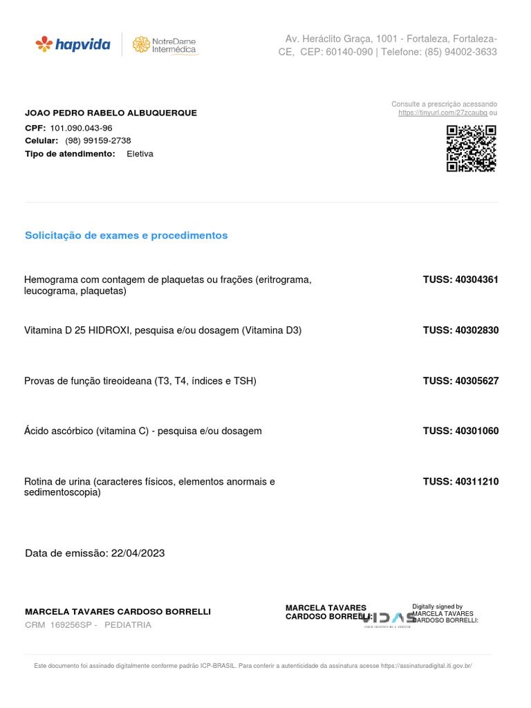 Ácido ascórbico (vitamina C) - pesquisa e/ou dosagem TUSS: 40301060